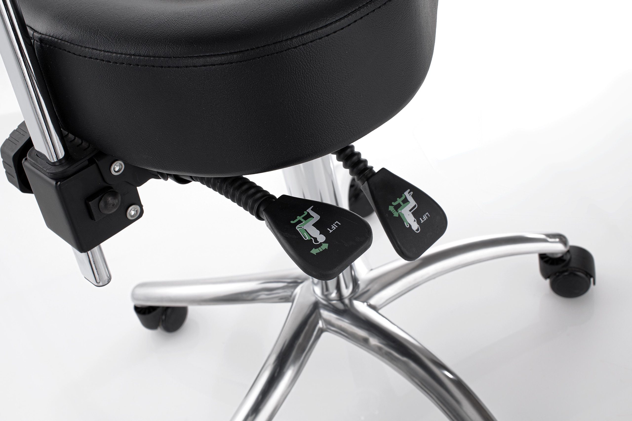 XS375207-os Balance 3 gurulós forgózsámoly igazi élménnyé varázsolja a mindennapos munkát. Szinte mindent tud, amire egy kozmetikai szalonnak, vagy orvosi rendelőnek a kényelmes munkavégzéséhez szükséges. Ergonomikus, párnás ülőrésze a hosszabb, munkával töltött napok során tehermentesíti a gerincet. Természetes és kényelmes üléspozíciót biztosít. Hidraulikusan állítható magassága, ülési szöge és háttámlája pedig testalkattól függetlenül segít megtalálni a legideálisabb ülőhelyzetet.