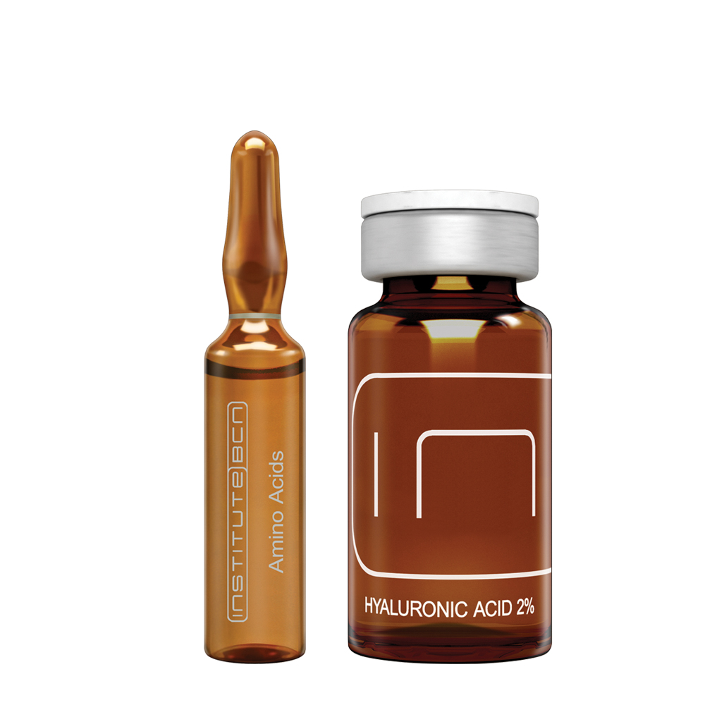 A hidratációját vesztett bőr nedvességpótlását egy szempillantás alatt elérheted mezoterápiás hialuronsav és aminosav ampulla párosításunkkal. A hialuronsav tömegének akár ezerszeresét is képes víz formájában megkötni, így tökéletes választás minden hidratáló kezeléshez. Hatását az aminosav szinergens hatása fokozza, mely nélkülözhetetlen alkotóeleme a bőr vízháztartásáért és sejtvédelemért felelős természetes hidratáló faktornak (NMF). Használatukkal nem csak a bőrt, hanem a bőralkotókat is megfelelő hidratációval láthatjuk el, így segítve a bőr normál szerkezetének és rugalmasságának a meglétét, szükség esetén visszaszerzését.