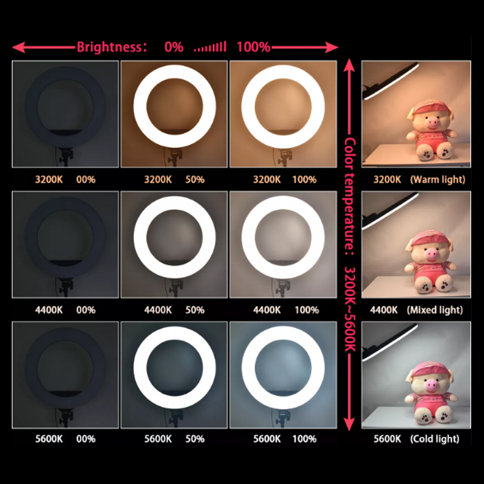A 21. század multifunkciós igényeit elégíti ki legújabb Circle Art, szempillás és sminkes lámpák, mely egy vérbeli vlogger munkaeszközének sem utolsó. A kör alakú, 640db LED-et tartalmazó lámpa minden munkafolyamatot, vagy témát tökéletesen árnyékmentesen világít meg és a fényforrásoknak köszönhetően hosszabb munkák során sem fárasztja a szemeket. Fényhőmérséklete 2700 és 6500 Kelvin között állítható, mellyel hidegebb, vagy melegebb színtónusú megvilágítást biztosíthatsz a megvilágított területnek és témának. 4000 Lumen fényereje kellően elegendő, hogy a belső árnyékosabb helységekben is a külső fényerőséghez hasonló, tökéletesen, erős megvilágítást biztosíts.