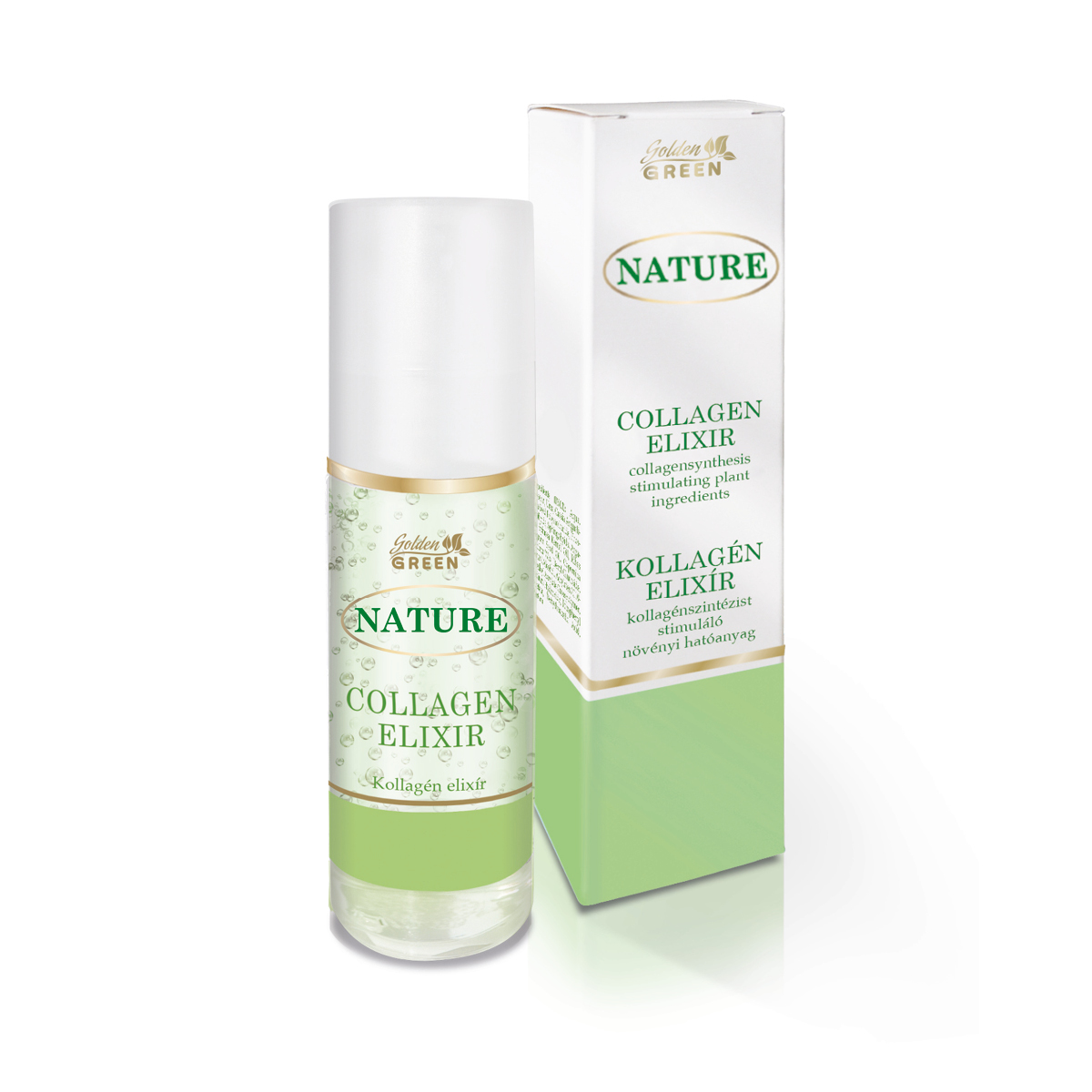 A Golden GREEN Nature Kollagén Elixír magas koncentrációjú természetes növényi hatóanyagaival stimulálja a kollagéntermelést, beindítva a regenerációs folyamatot és gátolva a bőr öregedését, melynek eredménye a feszes, fiatalos, hegektől és sebektől mentes egészséges bőr.