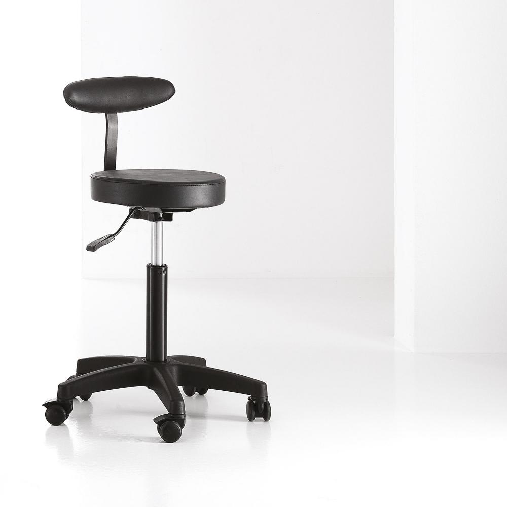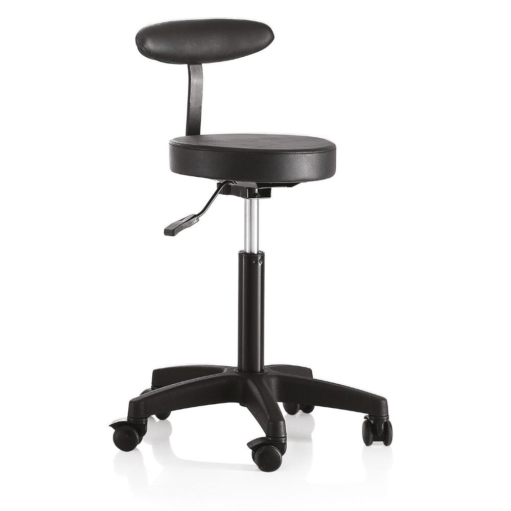 Gurulós forgózsámoly fekete műbőr kárpittal, fekete csillag talppal. Ez a forgózsámoly tökéletesen kiegészíti a szalon berendezését, vágáskor is használható, vagy csak a recepciós pultnál ülve; a szék kiválóan segíti a professzionális munkát a fodrászszalonokban és a szépségközpontokban egyaránt. A kényelem érdekében extra poliuretán párnázattal, műbőrrel kárpitozott a könnyű tisztítás érdekében.