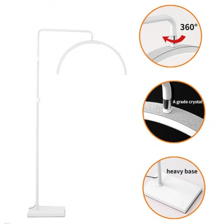 A Luxury Moon Pro lámpa lámpateste 55 cm átmérőjű és 360 fokban mozgatható ezáltal bármely formájú és típusú kezelőágyhoz és munkaterülethez alkalmazkodik. Félhold kialakításának köszönhetően minden oldalról egyenletesen világítja meg a munkaterületet. A lámpatestre illeszthető mobiltelefon tartót a csomag tartalmaz.