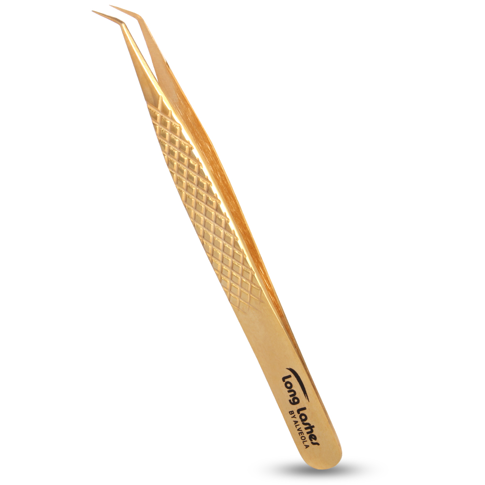 A Long Lashes hajlított szempillaépítő csipesze nem csak elegáns arany színe miatt lesz a kedvenced, hanem mert mesteri szintre emeli a vele készített műszempilla szetteket. Rozsdamentes acélból, gépi és kézi megmunkálással készült, és ideális nem csak a „pick up” technikához, hanem a műszempillák szálankénti felhelyezéséhez is. Elvékonyított fejrésze precízen megmunkált, így biztos lehetsz abban, hogy a felvett pillaszálak probléma-mentesen a helyükre kerülnek az építés során. Fogó része extrém nagy és a csúszásgátló bordázatnak köszönhetően biztos fogást tesz lehetővé.