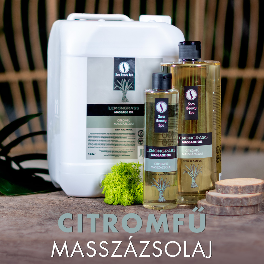 Természetes eredetű, növényi olaj alapú masszázsolaj citromfűolajjal és argánolajjal.