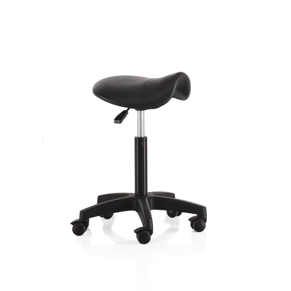 Nyerges gurulós forgózsámoly fekete műbőr kárpittal, fekete csillag talppal. Ez a forgózsámoly tökéletesen kiegészíti a szalon berendezését, vágáskor is használható, vagy csak a recepciós pultnál ülve; a szék kiválóan segíti a professzionális munkát a fodrászszalonokban és a szépségközpontokban egyaránt. A kényelem érdekében extra poliuretán párnázattal, műbőrrel kárpitozott a könnyű tisztítás érdekében.