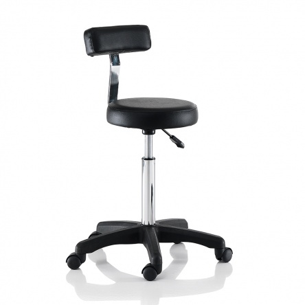 Gurulós forgózsámoly fekete műbőr kárpittal, fekete csillag talppal. Ez a forgózsámoly tökéletesen kiegészíti a szalon berendezését, vágáskor is használható, vagy csak a recepciós pultnál ülve; a szék kiválóan segíti a professzionális munkát a fodrászszalonokban és a szépségközpontokban egyaránt. A kényelem érdekében extra poliuretán párnázattal, műbőrrel kárpitozott a könnyű tisztítás érdekében.