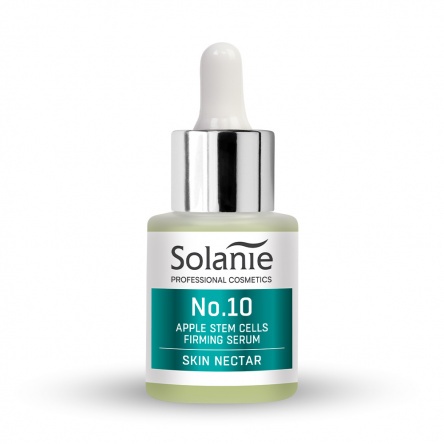 Bőrmegújító, hidratáló, antioxidáns és ráncsimító hatással kényezteti bőrödet a Solanie alma növényi őssejtes szérumja, mely különleges PhytoCellTech Malus Domestica növényi kivonatával igazi unikum a bőrápolók között. A szérum fő összetevője az extrém hosszú eltarthatóságáról jól ismert svájci almából nyert PhytoCellTech Malus Domestica kivonat. A különleges hatású növényi esszencia fokozza a felhám szöveteiben található bőr őssejtek működését és óvja élettartalmukat. Késlelteti ezen őssejtek öregedését, pozitívan befolyásolja életképességüket, vitalitásukat és segít felvenni a harcot az életkorral járó öregedés ellen. Foszfolipid és ceramid tartalma megerősíti a hámréteget megakadályozva ezzel a bőrön keresztüli folyadékáramlást és segítve ezzel védekező szerepét a külső hatásokkal szemben. Panthenol tartalma hidratáló és hámképzést elősegítő hatása szinergikusan támogatja ezeket a folyamatokat selymes bőrérzetet biztosítva a bőrnek.